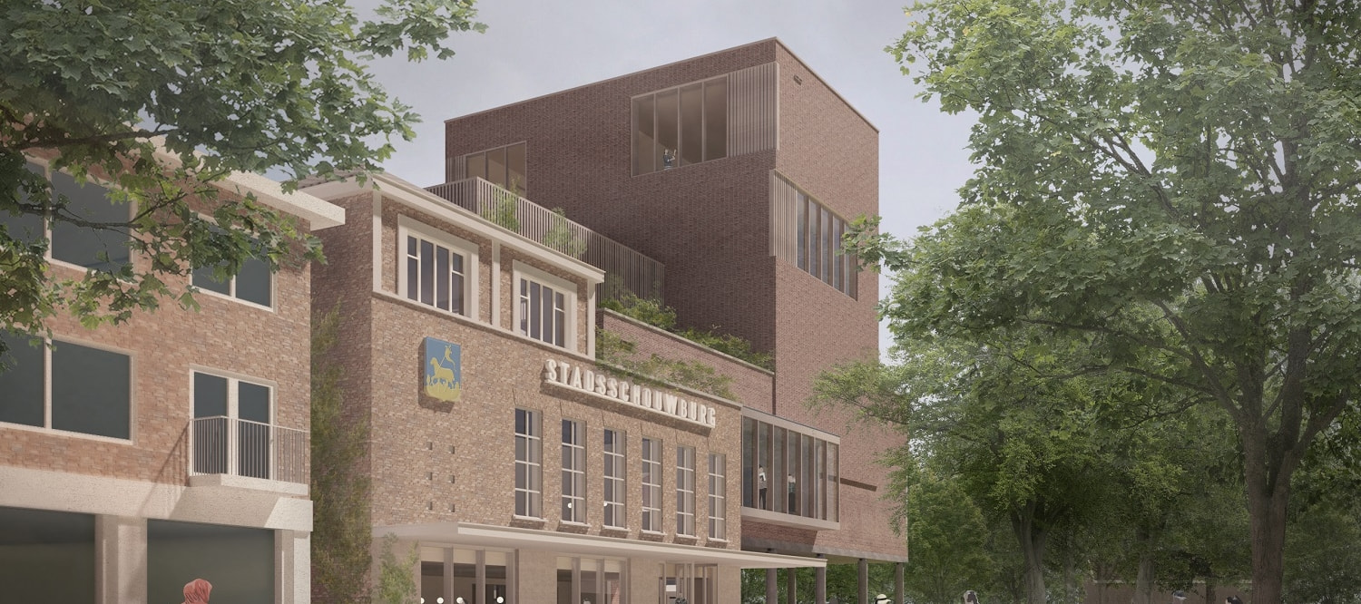Het bestaande gebouw aan de Groeneweg 71 in IJmuiden wordt volledig gerenoveerd, verduurzaamd en toegankelijk gemaakt. Daarnaast wordt de schouwburg uitgebreid met onder andere een kleine zaal, een filmzaal en studio’s. Het architectonisch ontwerp van Bedaux de Brouwer Architecten dat nu is vastgesteld, heeft veel oog voor de historie van het markante bestaande gebouw en het karakter van IJmuiden. Het ontwerp bestaat uit een sculpturaal vormgegeven volume dat door het gebruik van bakstenen aansluiting zoekt met de bestaande schouwburg en de omliggende bebouwing. Het gebouw staat in een parkachtige setting waarbij het groen zich op, onder en om het gebouw vouwt. De vele vensters geven inkijk in de nieuwe bruisende culturele wereld en uitkijk op de omgeving.